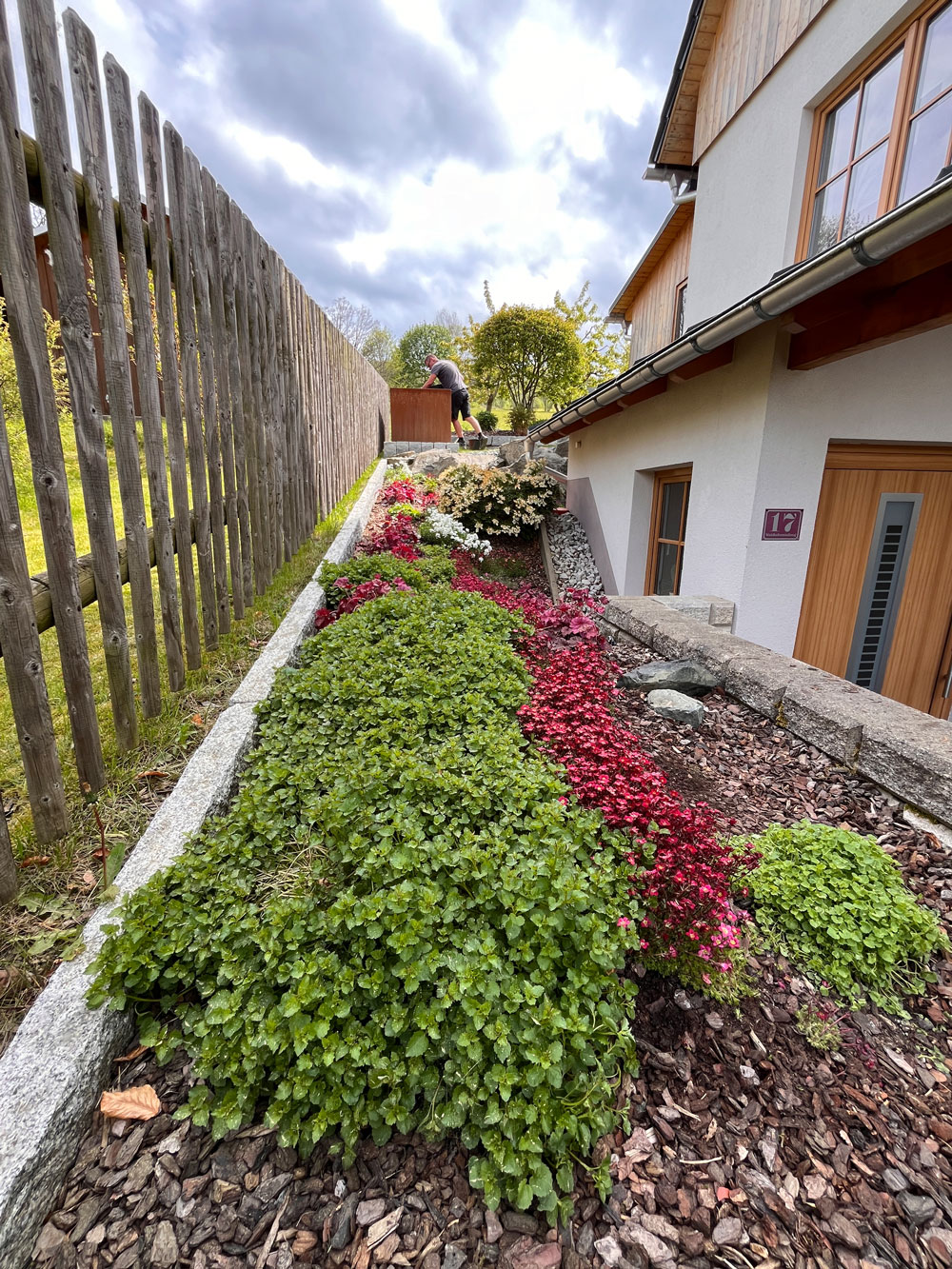 Ihre Wünsche und Vorstellungen aber auch der Aspekt der Pflegeintensität sind ausschlaggebend für die Art der Bepflanzung. Ob klassisch grüner Rasen in Kombination mit blühenden Bodendeckern und Sträuchern oder ein traditioneller Bauerngarten mit verschiedensten Kräutern und Stauden, wir beraten Sie gern und übernehmen die fachmännische Umsetzung.